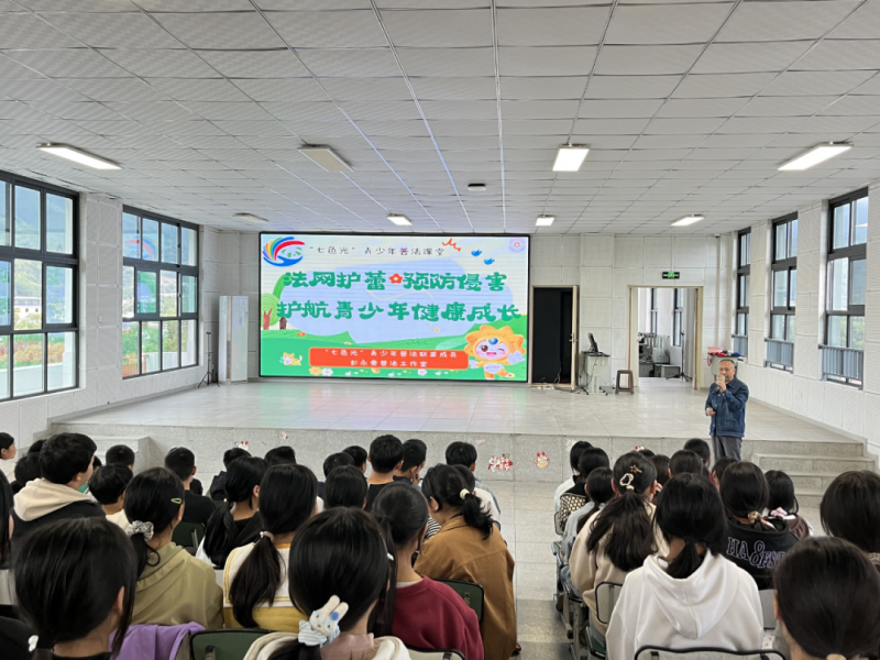 10月22日,“彭永贵普法工作室”主任彭永贵到大坝中学开展“七色光”青少年普法课堂——法网护蕾·预防侵害,为七年级200余名师生带去了一堂生动的法治宣讲课。