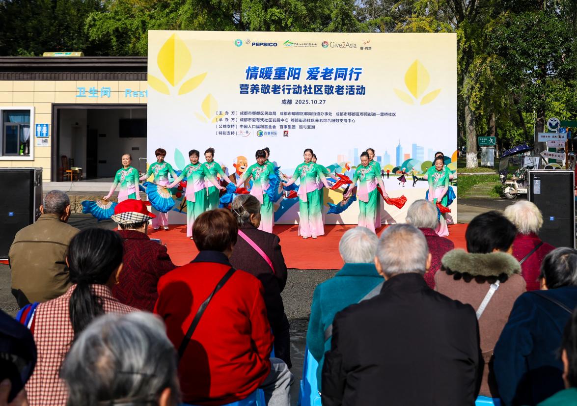 2025年10月,在中国人口福利基金会、百事集团、赠与亚洲的公益支持下,由成都市爱有戏社区发展中心执行的“情暖重阳・爱老同行”双社区敬老活动在成都一里桥社区与交子社区温情开展。活动聚焦高龄、独居、失能半失能老人的营养支持与精神关怀,通过“社区食堂+企业+志愿者”的联动模式,为老人送去节日的温暖与陪伴。