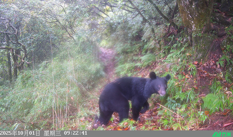 近日,大熊猫国家公园德阳片区样线监测调查队员整理第二季度红外相机数据时,收获意外惊喜——绵竹历史矿区漆树沟区域“气洞梁子”首次捕捉到九顶山野生大熊猫活动影像。这是该区域生态修复成效的直观见证。