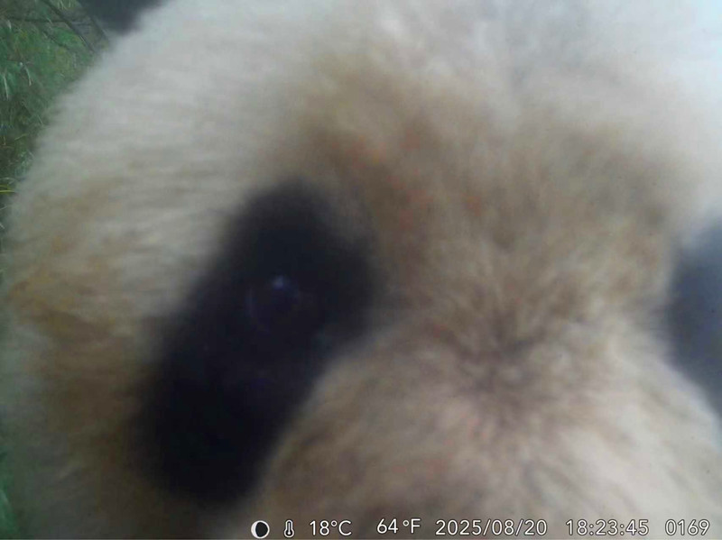 红外相机记录下趣味十足的画面:一只体态雄健的大熊猫径直奔向镜头,先是驻足嗅闻,随后摆弄相机,还将黑白相间的“猫眼”凑近镜头窥探。它眼中闪烁着好奇,半掩遮面的模样既像探索新奇玩具的孩童,又透着“领地主人”的随性,憨态可掬的姿态被镜头完整定格。