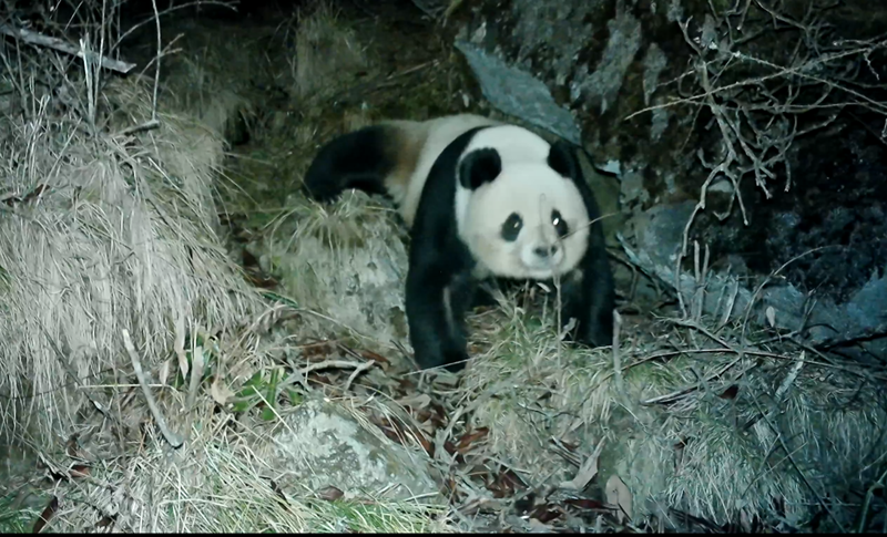 德阳九顶山再次拍到野生大熊猫 憨态“猫眼”窥镜头