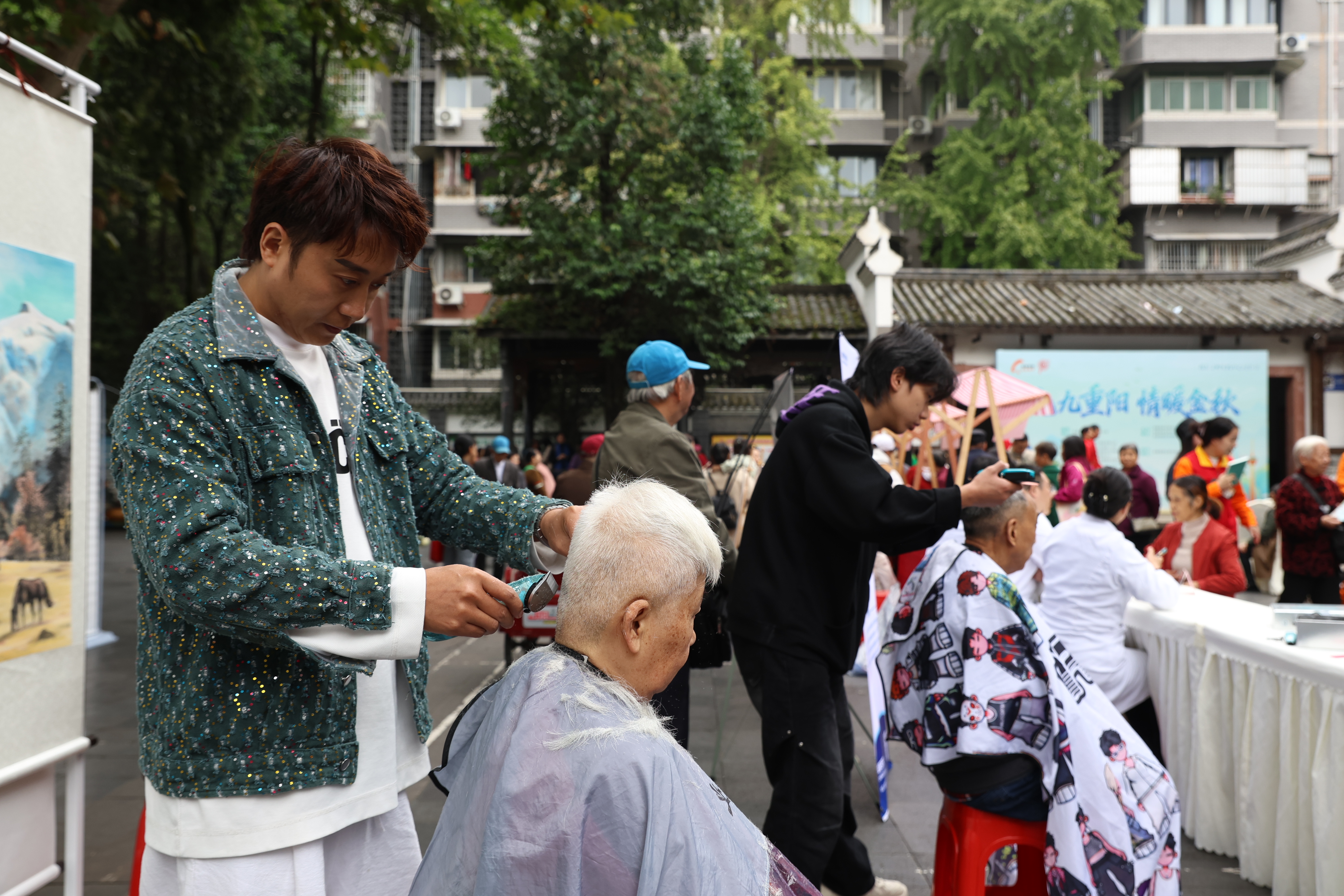 承着节气生活的智慧。成都地铁运营有限公司运营一公司带来的文明出行互动,通过趣味问答,让公共交通礼仪规范轻松普及;“文明有礼过重阳”知识问答环节围绕文明礼仪、文明旅游、文明养宠等主题,让文明理念深入人心。此外,“健康关怀暖重阳”区域的免费血压血糖测量、秋季养生咨询,以及“义剪暖心铺”志愿者的娴熟服务,无不于细微处传递着文明的温度与社会的关爱。许多居民表示:“这些服务太贴心了,不仅学到了知识,更感受到了实实在在的温暖,这个重阳节过得特别有意义。”