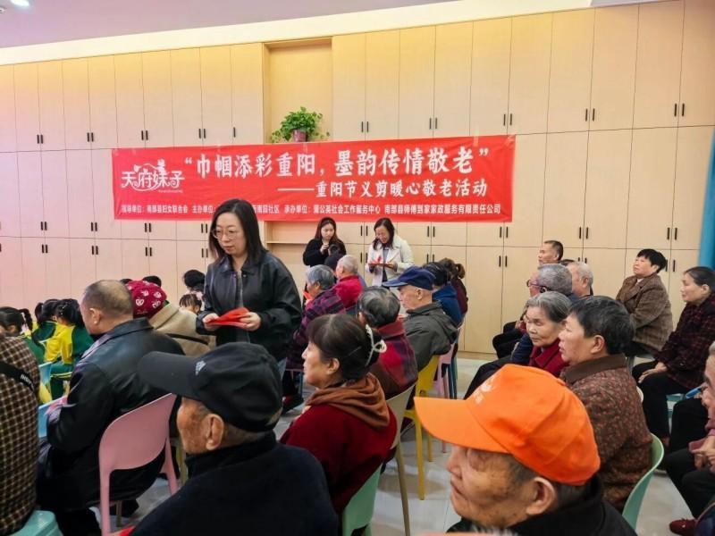 10月24日,南部县妇联携手县蒲公英圆梦志愿者协会、县旻轩女子书院、县旗袍协会在滨江街道振兴街南段社区开展了“巾帼添彩重阳·墨韵传情敬老”主题巾帼家政进社区服务活动,将传统文化与敬老温情深度融合,为社区老人送上了一份温馨满满的节日祝福。