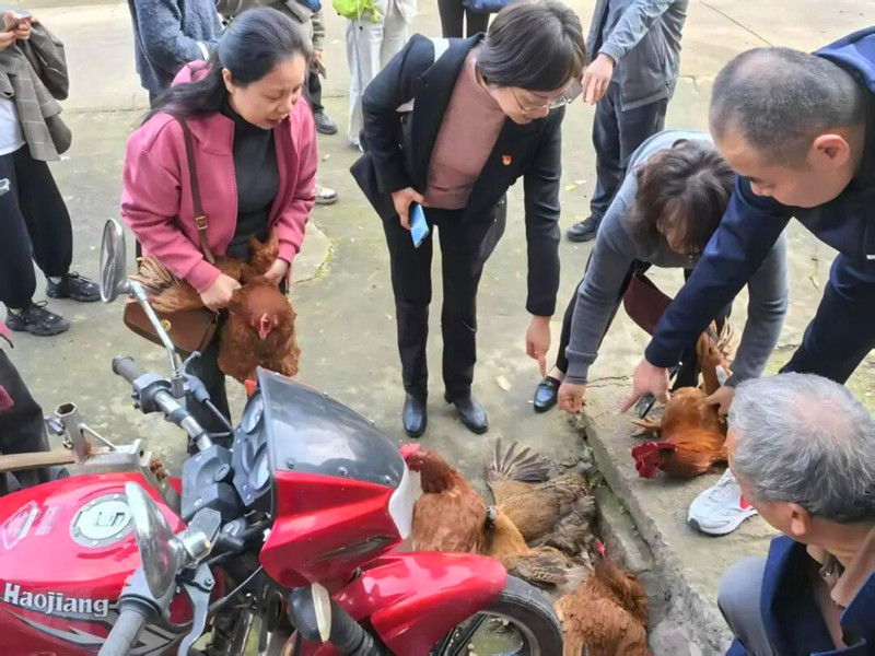 在象山村蔬菜产业基地,干部职工与党员们实地察看种植规模、作物长势及产销全流程,与镇、村干部深入交流,详细了解品种选育、田间管理、市场销售等环节的实际情况,精准梳理当前产业发展面临的难点堵点。随后,“以购助扶”农产品认购活动火热开展,大家踊跃选购当地农户自产的鸡鸭、红苕、南瓜等农特产品,以消费帮扶直达增收实效,用实际行动支持乡村产业发展,现场洋溢着浓厚的助农惠农氛围。