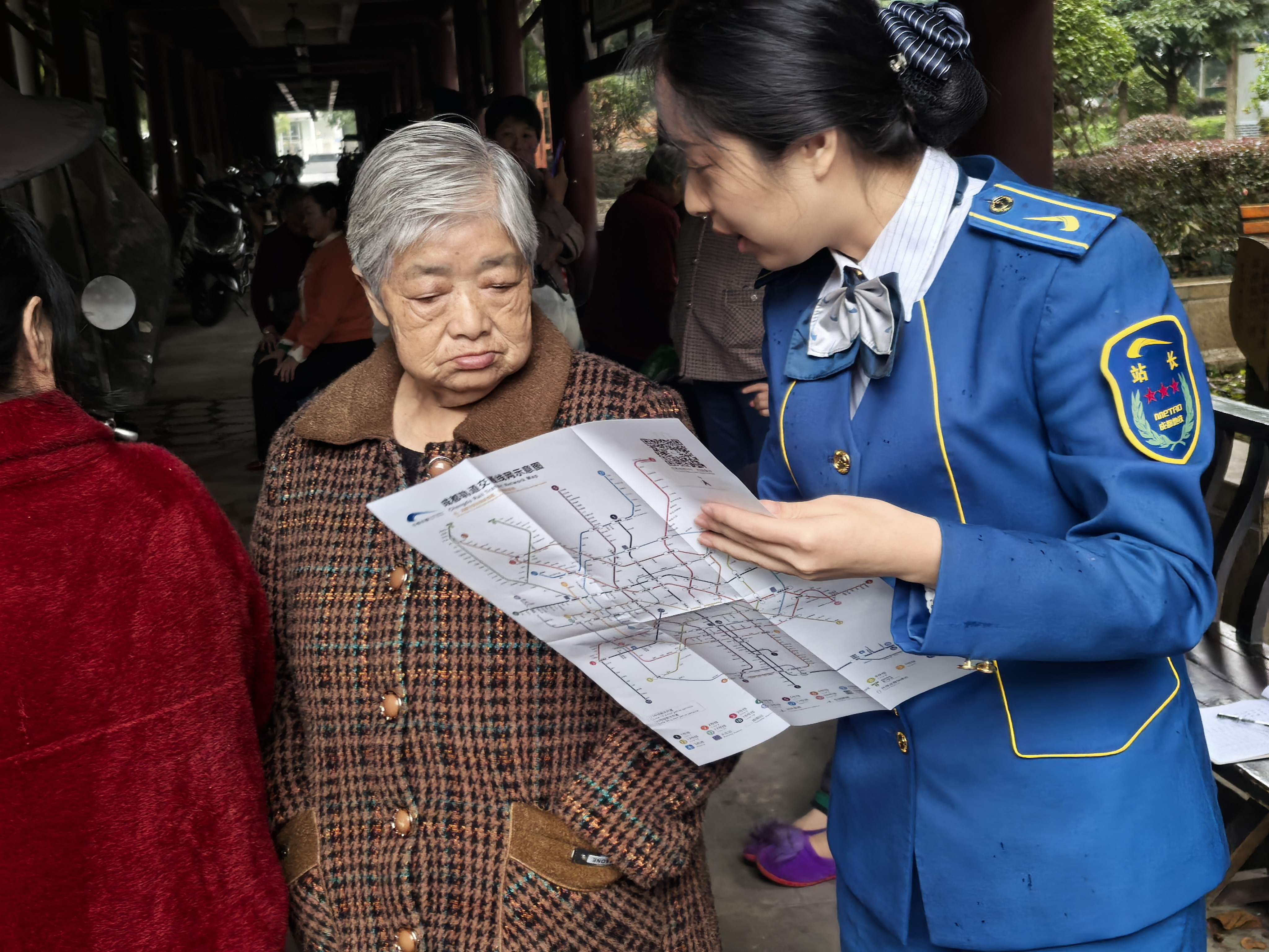 为进一步巩固讲解效果,活动设置了问答互动环节。面对老年居民提出的“如何从蓉2号线换乘地铁其他线路”“高峰时段乘车有哪些注意事项”等问题,工作人员逐一耐心解答,现场氛围热烈而温馨。不少老年居民表示:“以前总担心坐错车、不会换乘,今天听了讲解,心里踏实多了,以后出门更方便了!”