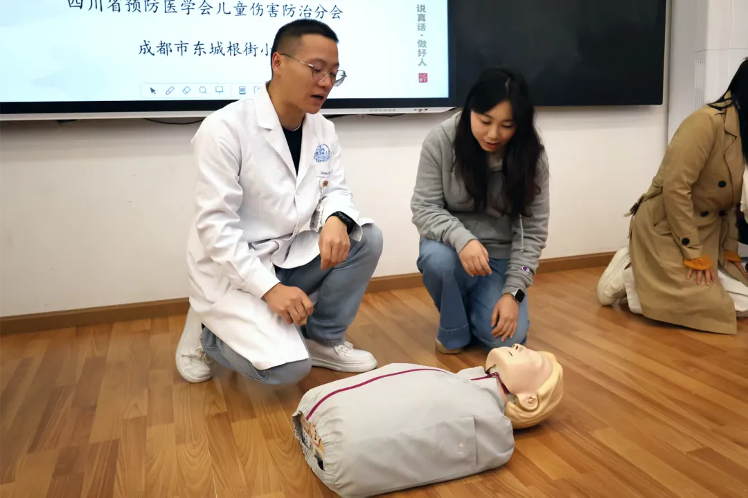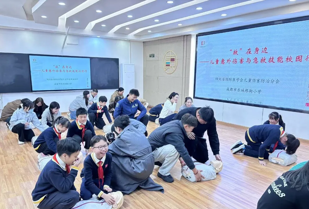 为提升师生应对突发状况的应急处置能力,助力校园安全,四川省预防医学会儿童伤害防治分会的主任委员单位——成都市第三人民医院儿科组织专业团队,走进成都市东城根街小学成功举办“‘救’在身边——儿童意外伤害预防与急救技能校园行”公益活动。活动旨在通过专业的“一对一”实操培训,将急救知识和技能精准送达到老师和学生手中。