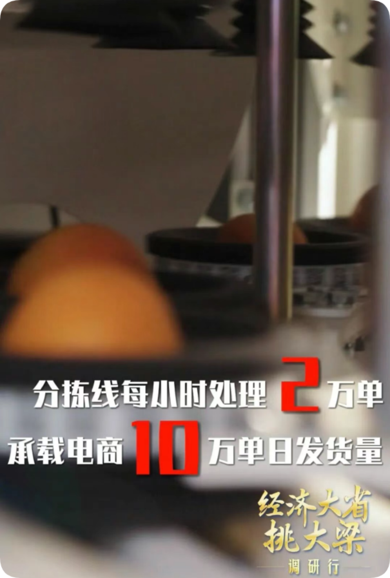 具备线下水果、食品等大宗农产品储存、包装、运输基础能力的南充现代物流园冷链仓储中心,10000平方米的仓库里,水果生鲜分区存放,分拣线每小时能处理2万单。可承载电商10万单的日发货量,为销售提供“硬”支撑。
