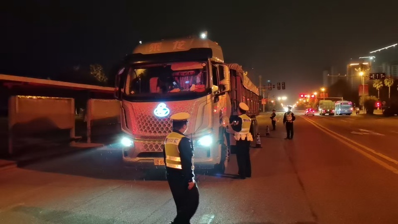 重拳夜查护平安!蓬溪交管大队严治重型货车超限超载违法行为