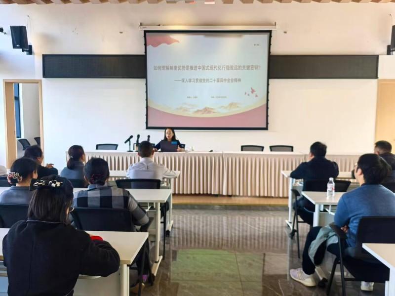 结合学习贯彻党的二十届四中全会精神,西南财经大学马克思主义学院的袁上副教授、许鹏讲师、王夏杰讲师分别以《以中国式现代化全面推进中华民族伟大复兴》《如何理解实现社会主义现代化是一个阶梯式递进、不断发展进步的历史过程?》《如何理解制度优势是推进中国式现代化行稳致远的关键密钥?》为题,从翠屏区情切入,围绕“准确领会党的二十届四中全会精神”“深刻把握党的二十届四中全会精神核心要义”“深刻认识制度优势对中国式现代化的保障作用”“更好发挥制度优势以谱写中国式现代化新篇章”四个方面,对全会精神进行了系统阐释和深入解读。