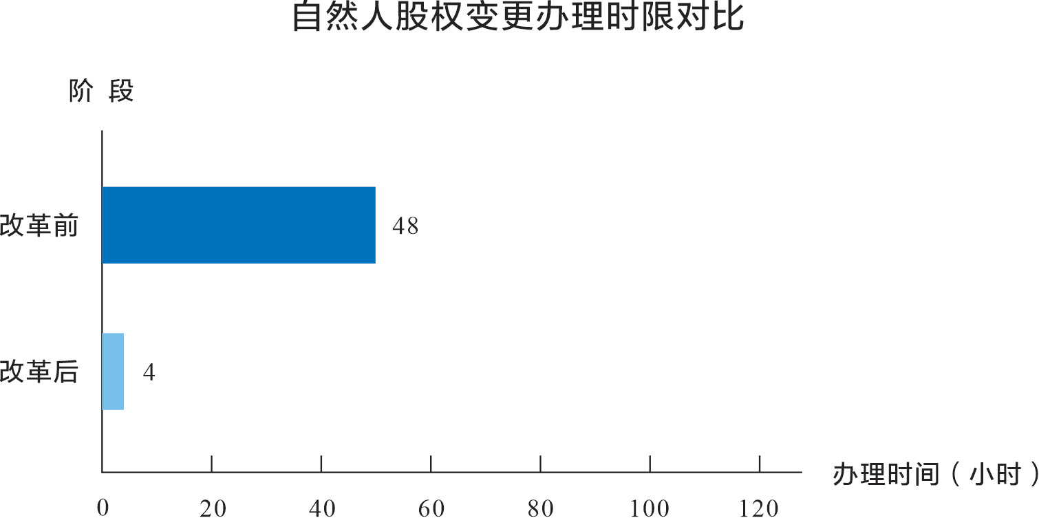 对业务办理流程进行系统性梳理和优化,将原本6个办理环节精简压缩至3个,通过统一业务标准,明确“一套材料、一次提交、一窗受理、一次办结”的“四个一”规范,实现业务办理的标准化和规范化。此外,实行4小时限时办结制,相比以往2个工作日的办理时限,审批效率提升75%,让企业能够更快速地完成股权变更业务。