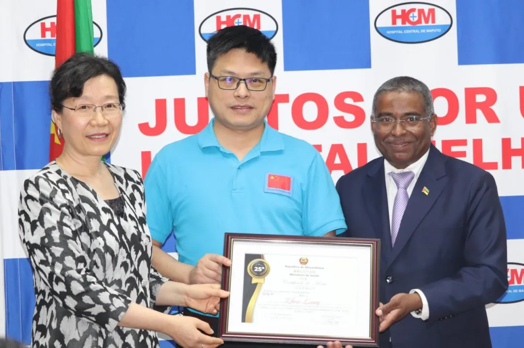 2025年10月27日,莫桑比克卫生署在马普托中心医院举行第25批与第26批中国医疗队交接仪式,莫桑比克卫生部部长乌塞内·伊塞和中国驻莫桑比克郑璇大使共同出席,为圆满完成任务的第25批中国援莫桑比克医疗队全体队员颁发荣誉证书,表彰他们在莫期间为提升当地医疗卫生水平、增进人民健康福祉所作出的卓越贡献。