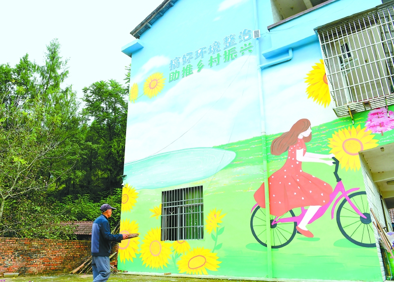 东升镇三官村刚绘好的“乡村振兴”主题彩绘。郭明摄