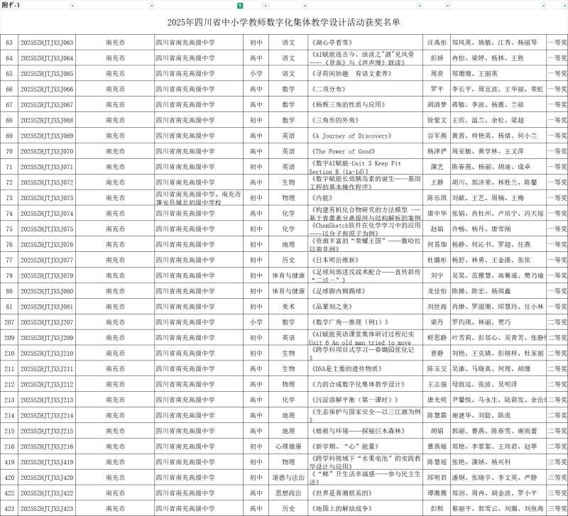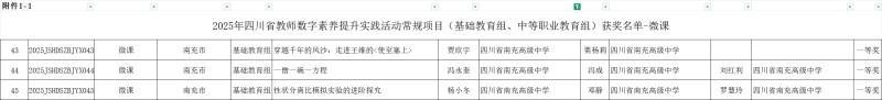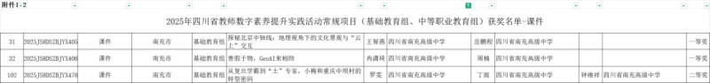南充高中在2025年四川省教师数字素养提升实践活动中喜获佳绩