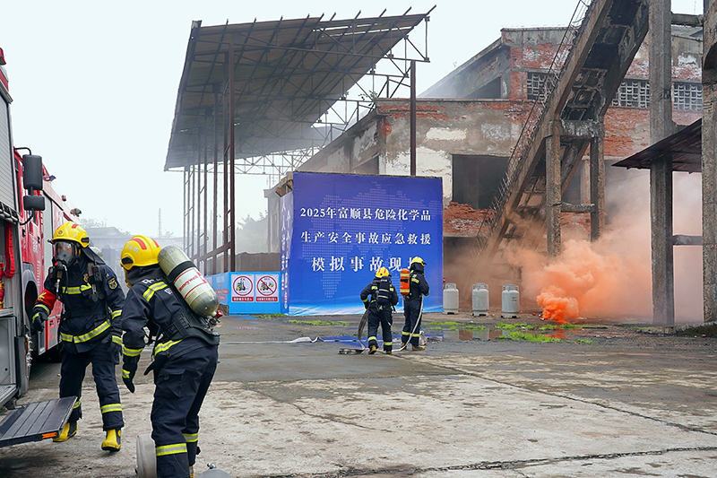 自贡市富顺县成功开展危险化学品泄漏爆炸应急救援实战演练