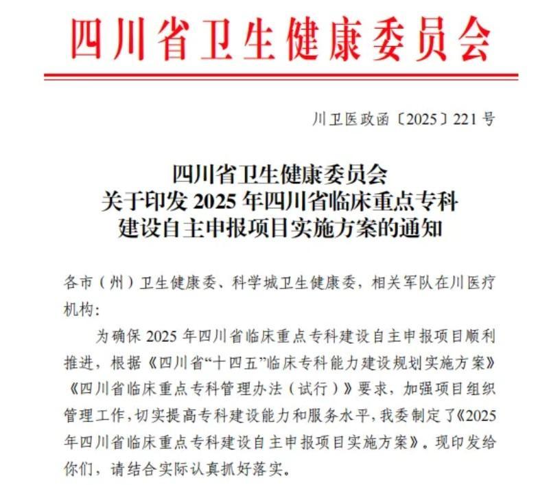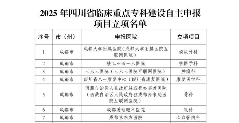 近日,四川省卫生健康委员会公布了 2025年四川省临床重点专科建设项目名单,经严格评审与层层筛选,成都京东方医院心血管内科凭借扎实的诊疗实力、完善的人才梯队与突出的技术创新能力,成功获批该项目立项。