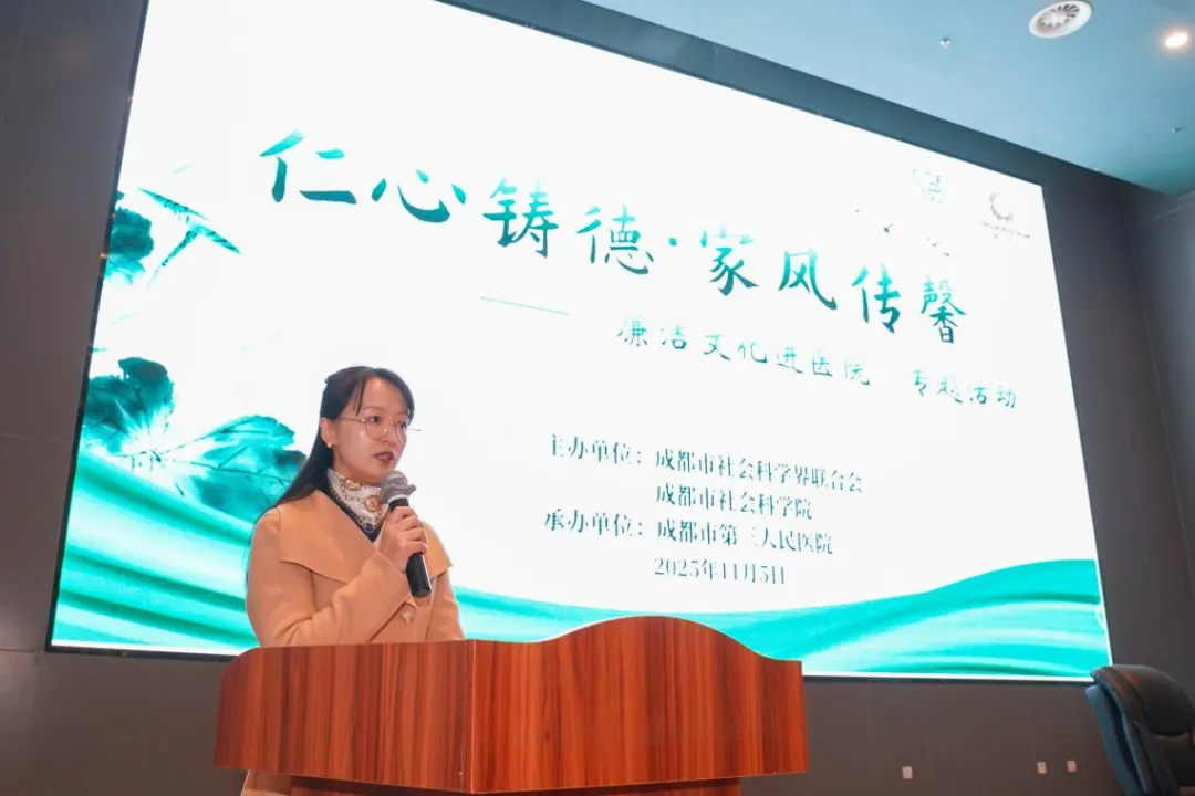 11月5日下午,由成都市社会科学界联合会、成都市社会科学院主办,成都市第三人民医院承办的“仁心铸德·家风传馨”廉洁文化进医院专题活动在市三医院学术厅举行。