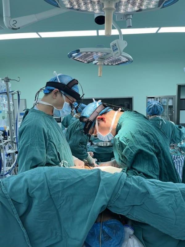 经过积极的准备,手术于2025年7月23日正式实施,由赖应龙亲自主刀,主治医生王亮、彭泰峦担任助手。术中发现:患者冠状动脉因尿毒症长期透析出现严重钙化,如同老化水管内壁结满坚硬水垢,吻合难度堪比“在玻璃丝上绣花”。经过心血管麻醉、手术中心、体外循环、术中超声、心外ICU监护团队等多部门协作,手术顺利完成。术中搭桥2根血管:左乳内动脉—前降支、升主动脉—大隐静脉—钝缘支,将原本狭窄的血管和健康血管连接,恢复了前降支、钝缘支的血液供给,术中彩超提示心脏各室壁运动功能恢复正常。