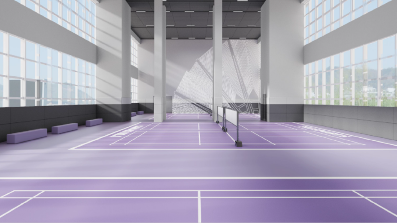 球类盛宴区:室内有13个专业羽毛球场地、3片篮球场,室外有4个网球场、1个篮球场。