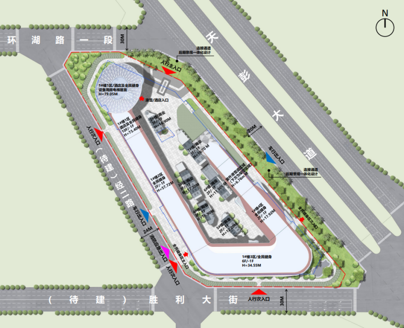作为彭州“民生大礼包”的核心项目,这座综合体含金量十足:项目总投资7.79亿元、占地65.52亩,位于彭州市南部新城片区致和街道环湖路一段南侧,经二路东侧,总建筑面积约11万平方米,其中地上建筑面积约8万平方米,地下建筑面积约3万平方米,最大建筑高度为83.6米,规划机动车位共710个。