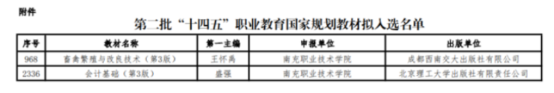 喜讯:南充职业技术学院两部教材入选教育部第二批“十四五”职业教育国家规划教材公示名单
