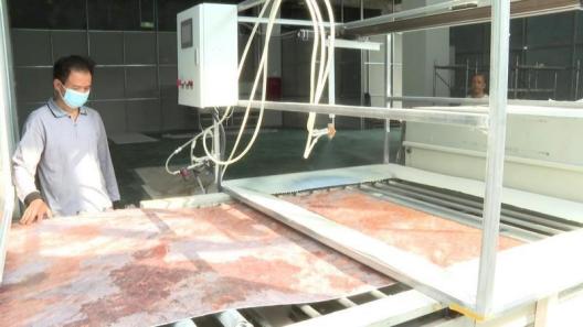 “公司自投产以来,每天生产约2000平方米3D柔性石材,目前能生产包括3D洞石、脉络石、夯土板等40余种产品,销往全国各地,外贸签约销售额500万元,预计今年底总产值能达到1500万元。”巴山虎重庆智能技术有限公司总经理汪守杨介绍。