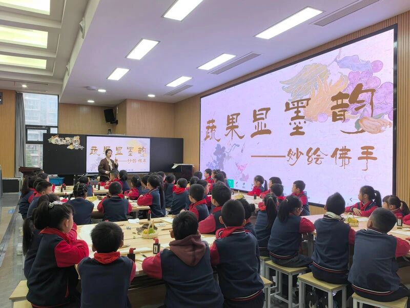 美术组赛课中,凤凰学校季丽莎老师执教的《蔬果显墨韵——妙绘佛手》拉开了活动帷幕。同学们通过触摸佛手柑的粗糙纹理,闻嗅独特清香,来感受其形态美感,小组合作中,大家分工勾勒、晕染,将观察到的佛手模样融入画面,笔墨间满是童趣与创意。