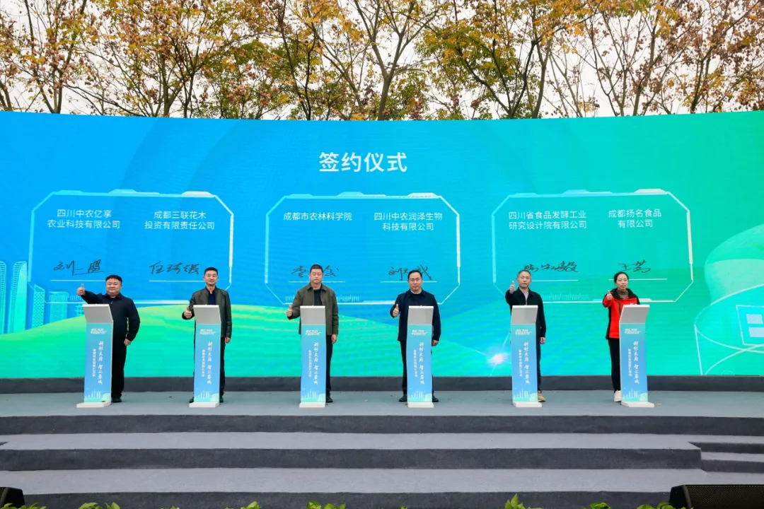 助力科技成果加速从“科技之花”结出“产业之果”,在活动现场,四川中农亿享农业科技有限公司与成都三联花木投资有限责任公司、成都市农林科学院与四川中农润泽生物科技有限公司、四川省食品发酵工业研究设计院有限公司与成都扬名食品有限公司三场合作签约成功“落笔”,为农业科技、食品加工等关键领域注入新动能。