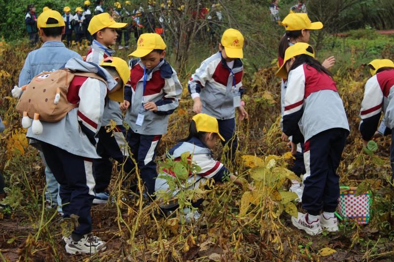 他们不仅观察雨后作物的生长状态,更亲手采摘下一颗颗饱满的黄豆。这些新鲜的收获被立刻带回室内,成为接下来手磨豆浆体验的原料。