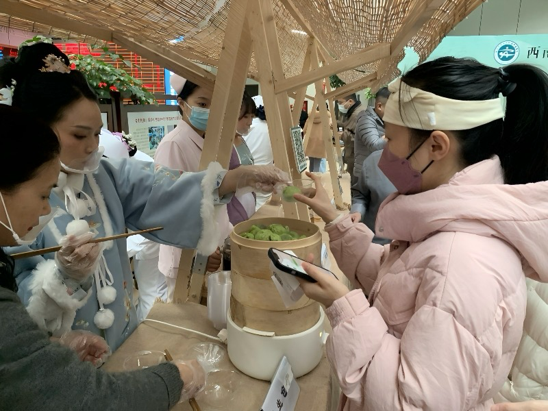 旁边的养生糕点专区,菊花酥、桃花酥、养生包子等不仅色香味俱佳,更融入了传统中医食疗理念,每一款都兼具美味与调养之效,很快就吸引了众多“好吃嘴”前来品尝。