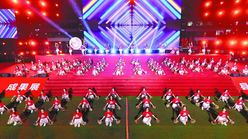 11月8日傍晚,一场主题为“相约百年·赓续华章”的文艺表演在营山中学运动场温情上演。演出分为“今朝·风华正茂”“流金·岁月如歌”“溯源·薪火相传”“传承·再创辉煌”四个篇章,用歌舞、情景剧、朗诵等表演形式,演绎了营山中学百年办学的奋斗历程。随着节目的精彩亮相,校园成了欢乐的海洋。