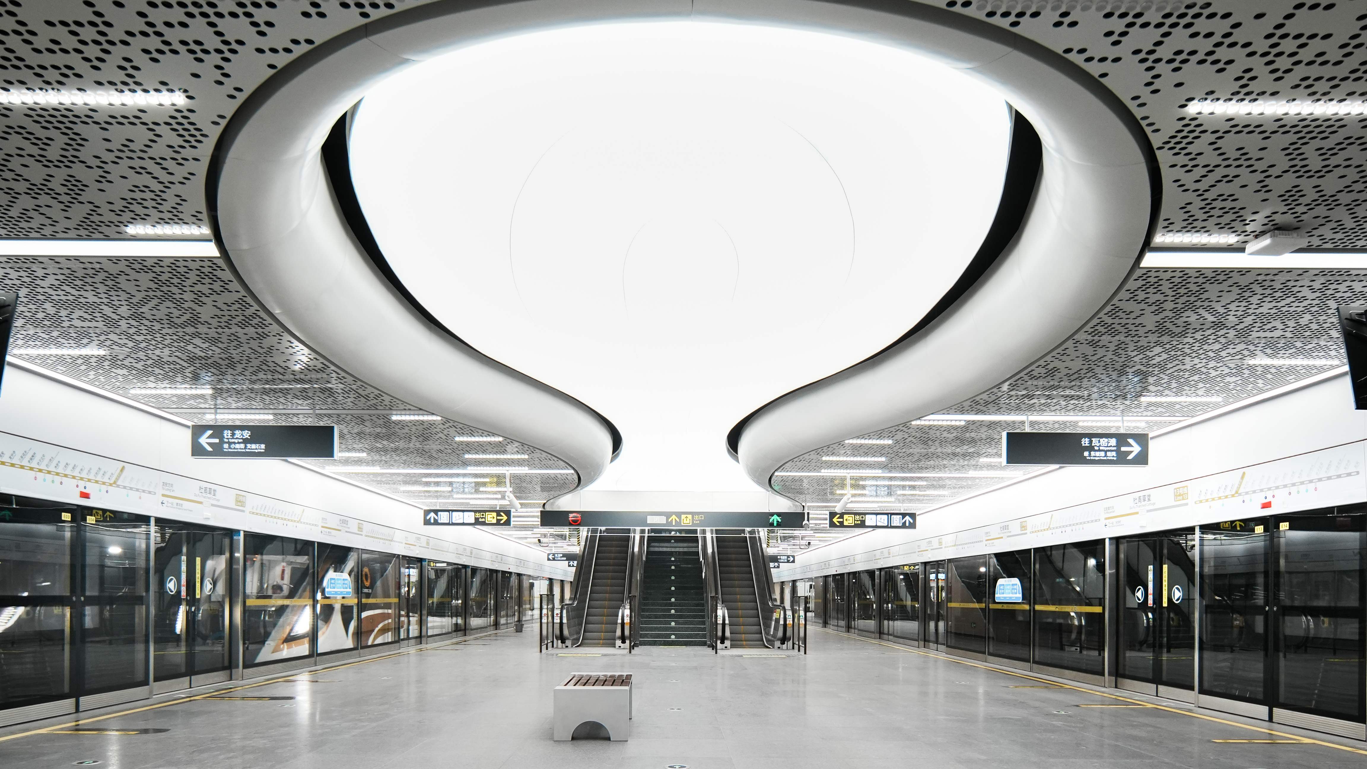 其余重点艺术站也独具风韵。光华村站以“诗韵自然·墨诉光华”为主题,融入杜甫《绝句》中的柳叶、西岭等元素,将浣花溪水的形态贯穿车站空间,营造出诗意缥缈的站厅氛围。九眼桥站以“望江记忆”为主题,通过天花拱形交错的空间形式,复刻锦江桥影与市井繁华。幸福梅林站则用点点梅花灯饰与粉白光影,营造出“游梦梅庭”的浪漫意境……全线车站出入口也融合川西传统民居屋脊与中国古典美学,让市民乘客从进入车站伊始,便开启一场“诗中有画,画中有诗”的沉浸体验。