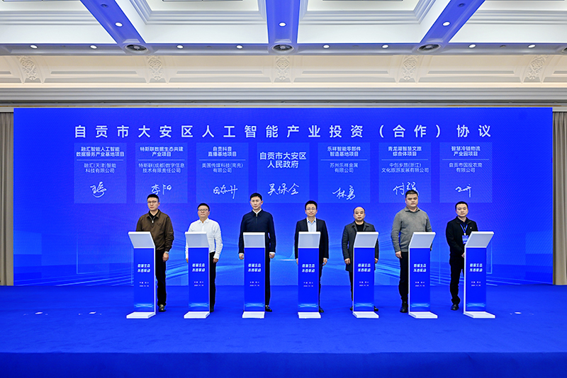 依托良好的产业生态与精准的招商对接,大安区在签约环节成果丰硕:与中改经济研究院、广东省数据要素产业协会等6家行业协会(研究院)签订《东西部数据要素协会战略合作暨自贡市数据标注产业发展战略合作协议》;与融汇(天津)智能科技、特斯联科技等6户企业签订项目投资协议,涵盖人工数据服务、数据生态共建、智慧文旅、智慧冷链物流等多个领域,总投资达11亿元,为区域数字经济发展注入强劲动能。
