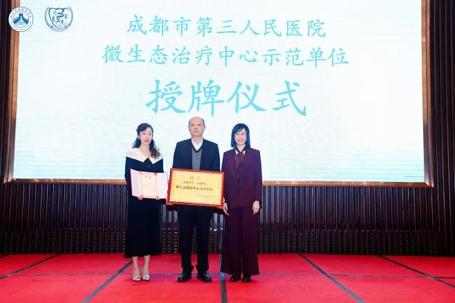 中国医学科学院/北京协和医院刘鱼教授向成都市第三人民医院临床营养科授牌“微生态治疗中心示范单位”,并带来微生态治疗方面的研究进展分享。