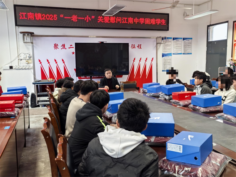 江南镇人民政府为江南中学32名困难学生每人赠送了一件冲锋衣和一双鞋子,江南镇慰问小组一行深入学校,与受慰问学生亲切交流,详细了解学生的生活状况、学习情况,鼓励孩子们乐观面对生活,坚定生活信念,珍惜时光,好好学习,用知识改变自己和家庭的命运。
