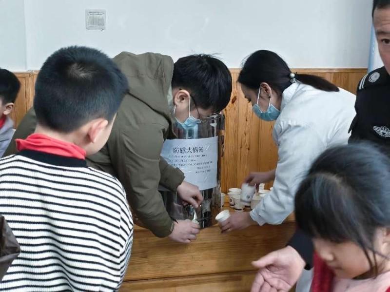 活动现场,医护人员提前将熬制好的“大锅汤”分装到保温桶中,有序分发给每一位学生。医护人员将用法用量分别贴在保温桶上,还向师生们详细讲解了“大锅汤”的功效、饮用方法及注意事项,并提醒同学们在冬季要注意保暖、勤洗手、多通风、均衡饮食、加强体育锻炼,养成良好的卫生习惯和生活方式,从源头上降低流感发生的风险。