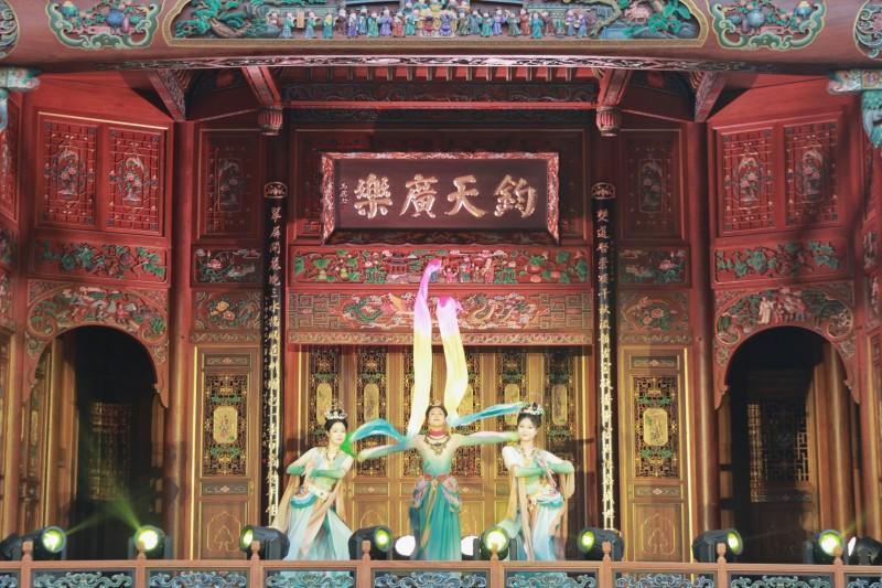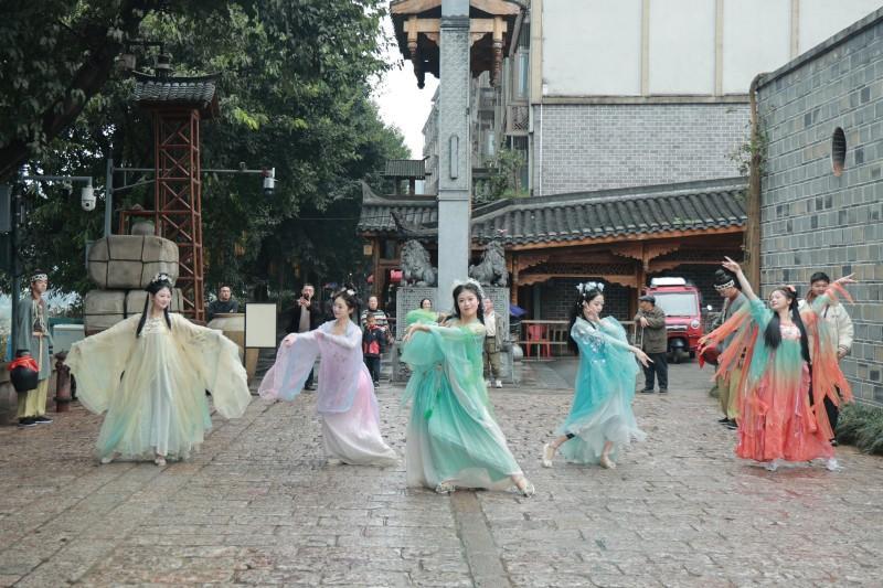 随着浑厚鼓点响起,沿着长春街的《五粮酿春秋》巡游快闪拉开演艺序幕,身着传统服饰的演员们在古窖池群间表演,以舞蹈还原非遗酿造技艺,将游客们带入了传承千百年的酿酒场景中。精彩不断,好戏连台。《醉赏丝竹》民乐竹笛、《醉旋胡姬》国风舞蹈等节目轮番上演,街区即舞台、行走即观演的沉浸式体验,让游客步步入景、秒穿千年。