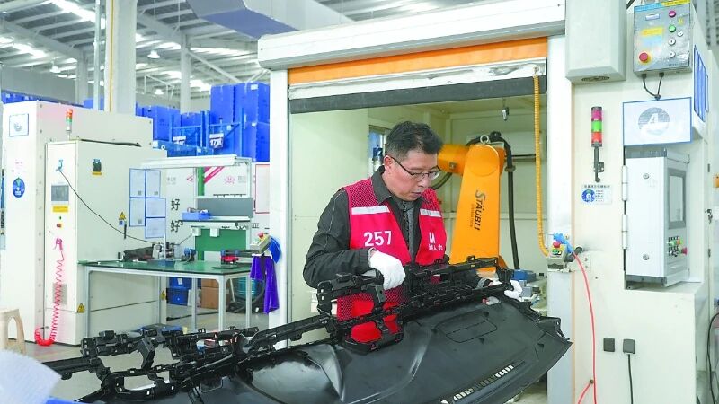 位于嘉陵区新能源汽车汽配智造基地内的四川省美虹电子科技有限公司的CNC车间内,打磨和钻孔等工序正精准高效完成。该公司是一家研发、生产、销售汽车中控面板的汽车汽配企业,主要为吉利、比亚迪、锐阳等车企提供配套。自2024年10月投产以来,企业以车载项目为切入点,通过深度优化与高效整合各类资源,有力促进了嘉陵区汽车汽配产业链的补全、强化与延伸。“目前12个生产车间满负荷运转,日均产能超万片面板。‘机械手天团’将加速集结,使生产线智能化水平达到90%。”四川省美虹电子科技有限公司行政部经理刘春蓉说。