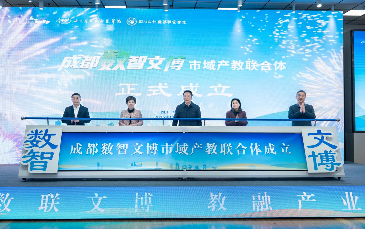 2025年11月26日下午,“成都数智文博市域产教联合体”成立大会在四川文化产业职业学院举行。该联合体由成都市青羊区少城国际文创谷管委会与四川文化产业职业学院牵头,联合74家政府部门、高校、科研机构及企业共同组建,以“数联文博、教融产业”为核心理念,推动教育链、人才链与产业链、创新链深度融合,助力成都文博行业及文化数字化产业高质量发展。