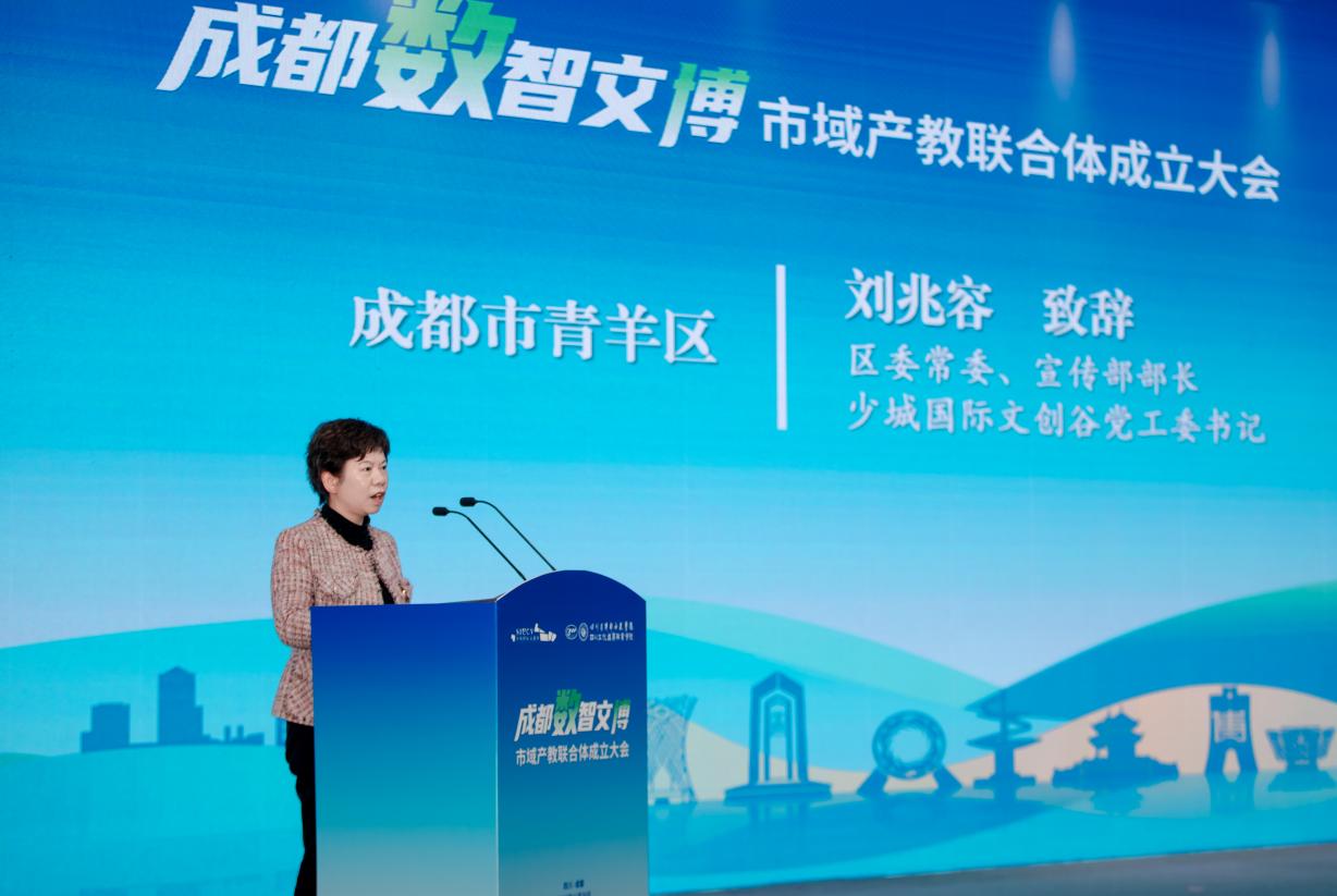 刘兆容在致辞中指出,青羊区作为成都城市的地理原点与文化核心,拥有中心城区70%以上的文脉资源,金沙遗址、杜甫草堂、宽窄巷子等文化地标与蜀锦、蜀绣等非遗技艺在此交相辉映。少城国际文创谷作为全区文创产业主阵地,已集聚市场主体3万余家,培育规上企业687家,构建起以演艺演出为“核芯”,文博旅游、影视音乐、创意设计为链条的“一芯三链”现代产业体系。联合体的成立,是贯彻国家产教融合战略、服务区域文博产业发展的关键举措。