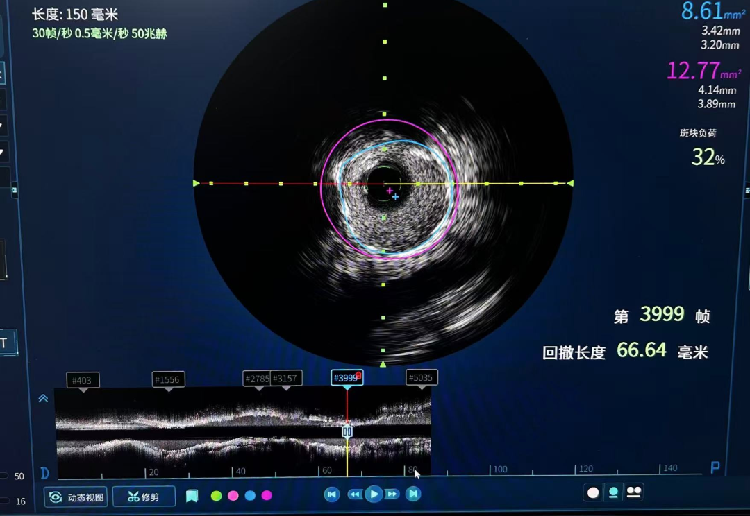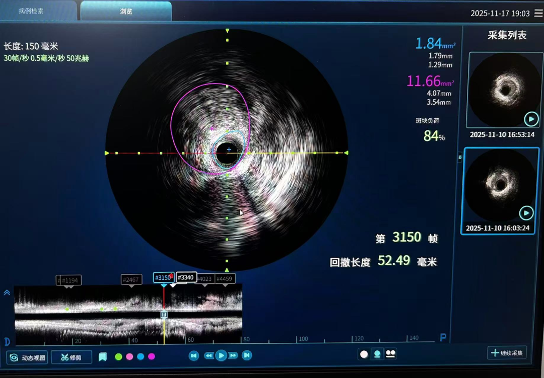 术后优化:在球囊扩张并植入支架后,团队再次利用IVUS对结果进行了“质检”。通过评估支架的贴壁情况、扩张是否充分以及是否完全覆盖病变,确保了支架植入的“完美无瑕”,从根源上降低了术后再狭窄和血栓形成的风险。