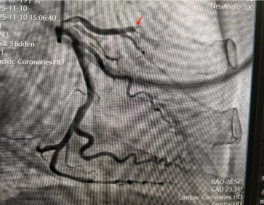 患者为一名67岁男性,因反复胸闷6个多月,胸痛伴心累气紧近一周,遂前来就诊。经过接诊医生初步诊断为冠状动脉粥样硬化性心脏病,在完善各项相关检查后进行了冠状动脉造影,造影发现该患者左侧冠状动脉前降支中段血管存在闭塞,传统的介入手术中,医生主要依赖冠状动脉造影来引导操作。然而,造影提供的仅是二维的血管“影子”,对于血管壁的内部结构、斑块的性质、闭塞段的真实长度及原因,如同“雾里看花”,难以精确判断。这使得手术具有一定的“不确定性”,尤其在处理完全性闭塞等复杂病变时,犹如在黑暗中摸索,导丝能否成功通过、支架尺寸选择是否最佳、贴壁是否完美都面临着巨大挑战。