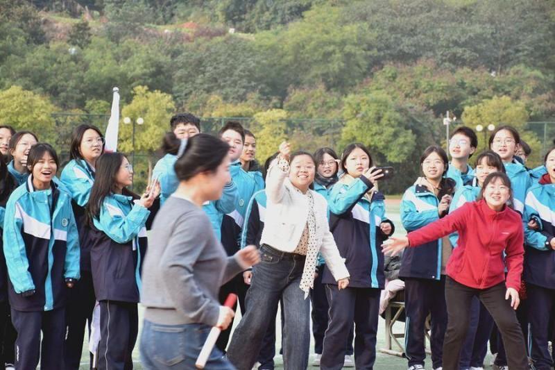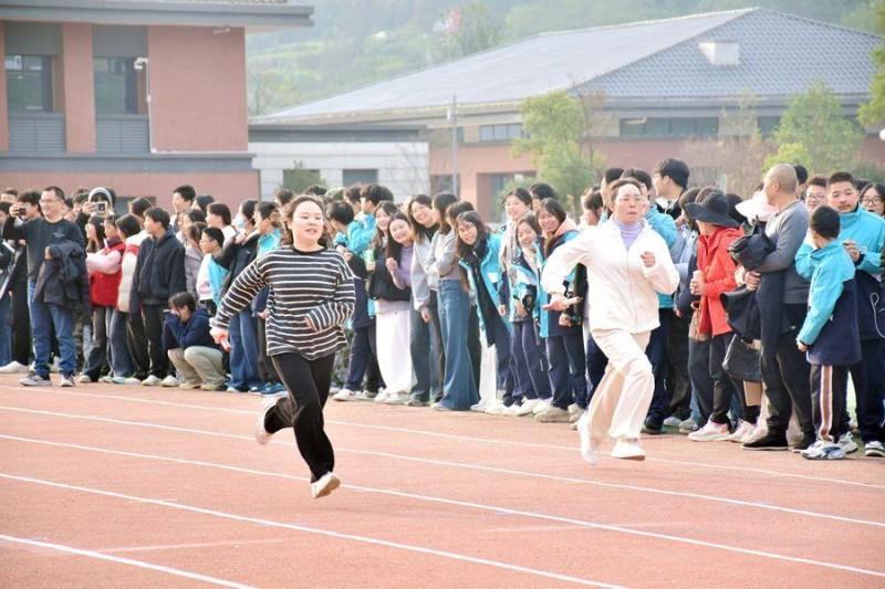 本届运动会特别设置的教师项目成为全场亮点。在迎面接力赛中,平日儒雅的教师们你追我赶,展现了讲台之外的活力与风采;在“毛毛虫”趣味赛中,老师们骑在充气道具上协力前进,默契的配合与欢快的场景引得全场笑声、欢呼声不断。“看到老师们在赛场上全力以赴,感觉特别亲切,也激励我们要更加努力!”高一(3)班王同学兴奋地说。参赛的张老师也表示:“师生同场竞技,不仅锻炼了身体,更在欢乐的互动中深化了彼此的情谊,这才是真正的‘共享竞技快乐’。”