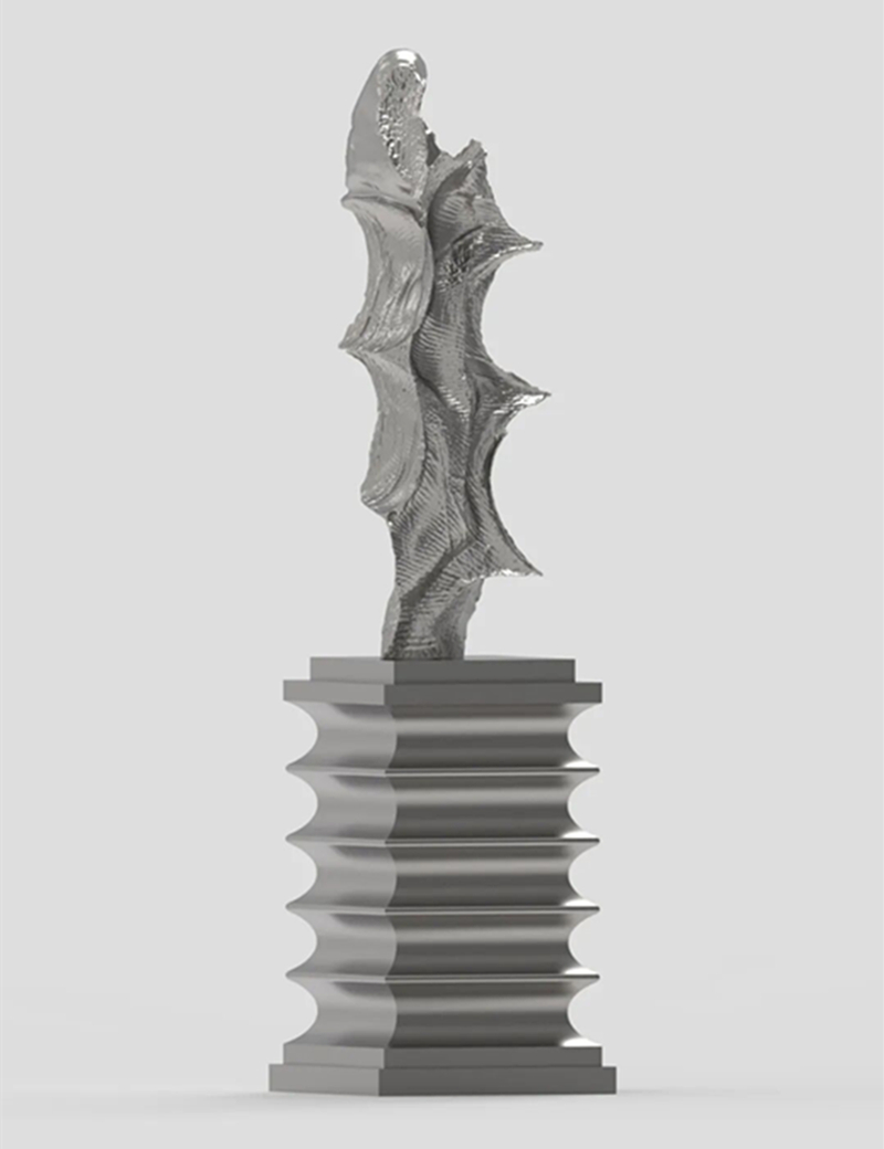 雕塑作品《合古塔》延续了隋建国“以实写空”的创作思路,通过手掌挤压柔软的泥从而塑造出掌心的空间,以实体的形刻画出转瞬即逝的虚空存在,并借助3D打印技术放大,艺术家掌心的纹路化为了作品上独特的印迹。