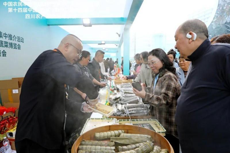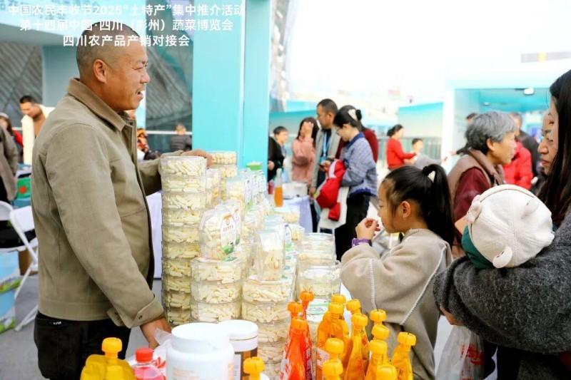 在双湖国际会展中心,“土特产消费大集”汇集了来自全国的超300个展位,智慧农业、川浙协作、烟火小吃等八大专区,配合线上平台的消费券、红包雨、产地盲盒等互动,打造了一场“数实融合、全域引流”的消费盛宴,让“蔬式生活”的烟火气与时尚感扑面而来;在天府蔬香博览园,设置了蔬菜种业科研展、现代设施农业展、高标准农田景观展等专业展区,集中呈现彭州蔬菜产业的创新实力与科技成果。