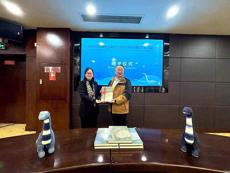 会议期间还举行了简短的赠书仪式。自贡恐龙博物馆馆长曾小芸代表博物馆,向曲阜师范大学等国内外机构赠送了这本凝聚了四川盆地恐龙化石最新研究成果的学术著作,旨在促进学术资源共享与国际同行的交流合作。