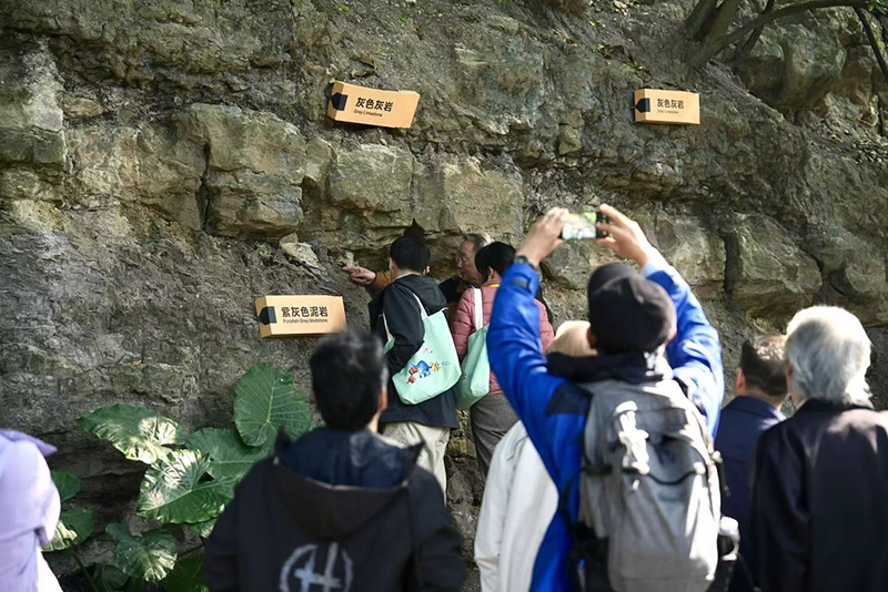 值得一提的是,此次考察的大安寨灰岩是自流井组上部的一段地层,而自流井组在地质学上具有里程碑意义。1933年,中国著名地质学家谭锡畴、李春昱将此地出露的一套连续的陆相地层命名为“自流井层”。这一命名不仅具有开创性,更使该地层此后成为国际地质学研究的重要标准剖面,为四川盆地的地层划分与对比提供了关键依据。