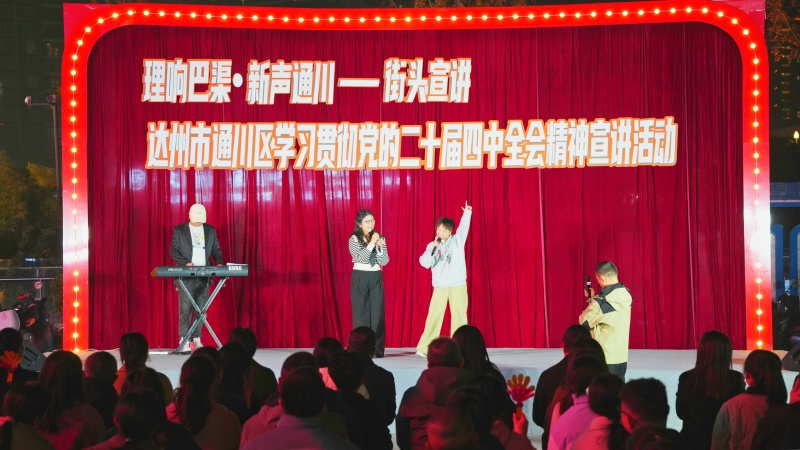 12月1日晚7时,达州市通川区罗浮广场热闹非凡,“理响巴渠新声通川”街头宣讲活动在此火热举行。来自机关、村(社区)、新就业群体的6名基层宣讲员轮番登台,把“大主题”讲成“小故事”,把“书面语”译成“知心话”,让党的二十届四中全会精神在一线落地见效,吸引近千名市民驻足聆听、掌声不断。