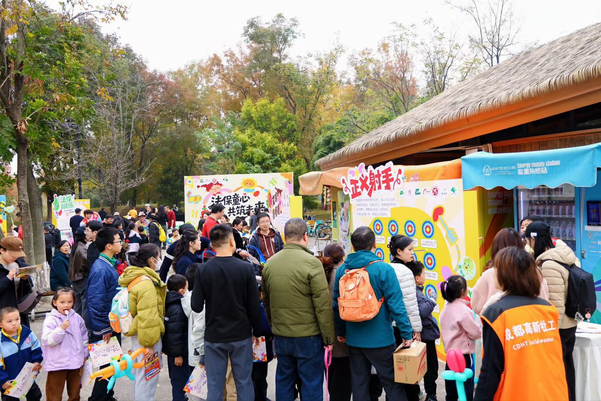 初冬暖阳下,普法“动”起来。 11月29日下午,在成都环城绿道高新区中和街道段,一场别开生面的“法保童心,共筑未来”未成年人保护主题公益倡导活动成功举办。本次活动由成都法院“豌豆荚”法治宣讲团、北京华宇公益基金会、成都高新区爱有戏社会工作服务中心、四川省律师协会、成都市锦江区生绿色生态文化发展中心联合主办,十余家单位共同支持。多方携手将未成年人保护工作搬进户外自然,通过沉浸式互动游戏,吸引了数百个亲子家庭参与,为初冬的成都注满了法治的温情与文明的活力。