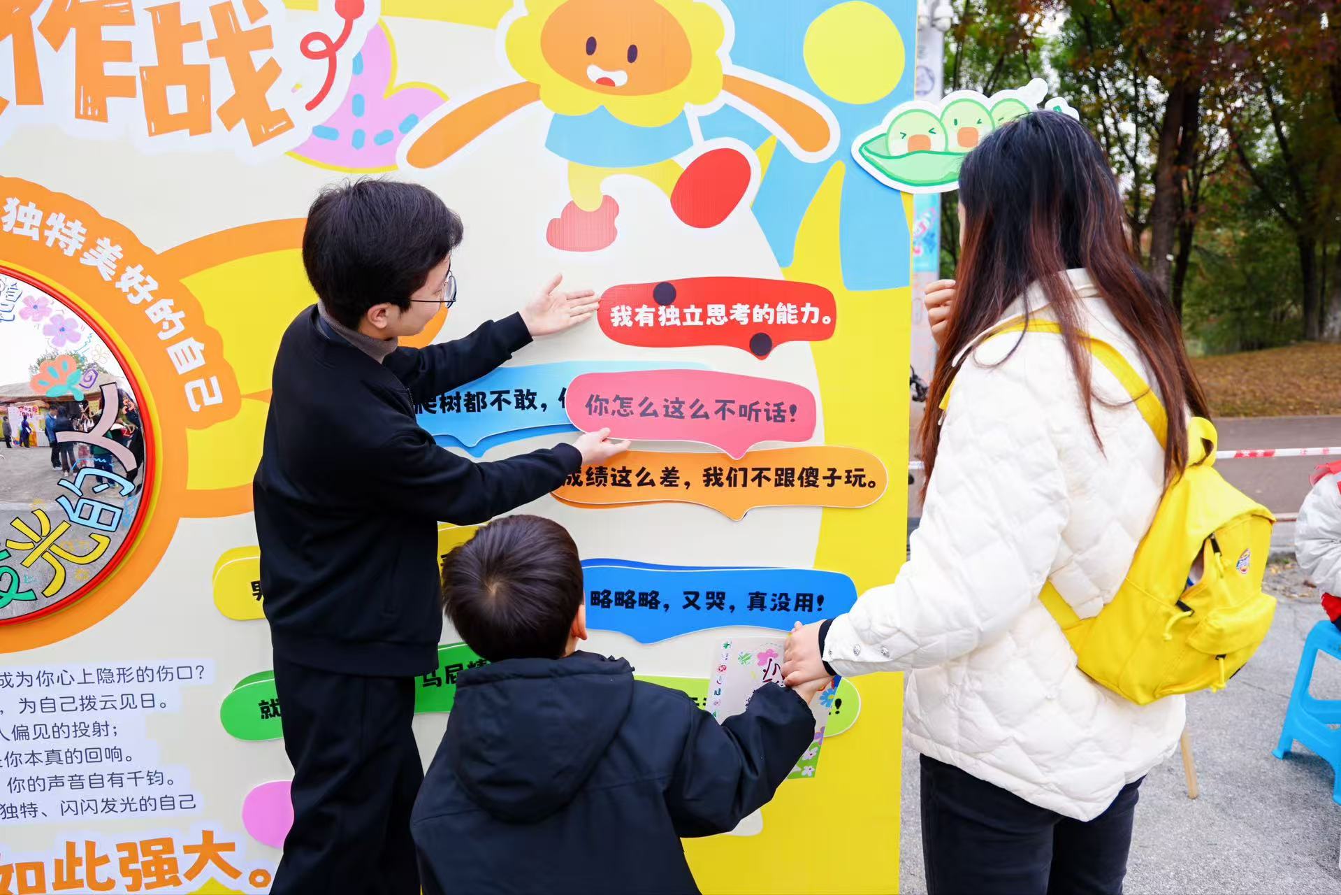 “爱的加油站”具象地展示了对抗暴力最柔软的方式是爱。在“夸夸挑战区”,不管是亲子、情侣还是朋友,大家面对面真诚赞美、温暖拥抱。直接的情感流动,让每个人都感受到了人际关系中的安全感与支持力。