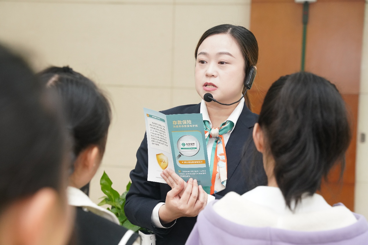 在大厅体验环节的尾声,工作人员还为“小史官”讲解了“存款保险”、合法使用人民币等重要金融知识。